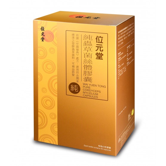 位元堂纯虫草菌丝体胶囊依据《中国药典》所列之处方,选用符合国家标准之发酵虫草菌粉而成。发酵虫草菌粉含有腺苷,可补肺益肾,尤其适用于肺肾两虚、精气不足、久咳虚喘、神疲乏力等症之人士服用。