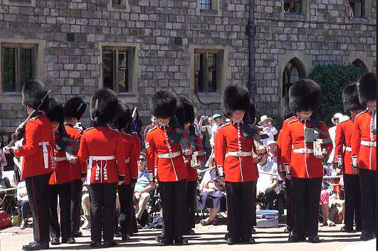 . } y. G/ ?" i1 C 【环球网综合报道】据英国《每日邮报》6月20日报道,在英国温莎城堡今年的嘉德勋章仪式上,一群年轻的警卫们突然陷入混乱,场面十分尴尬。