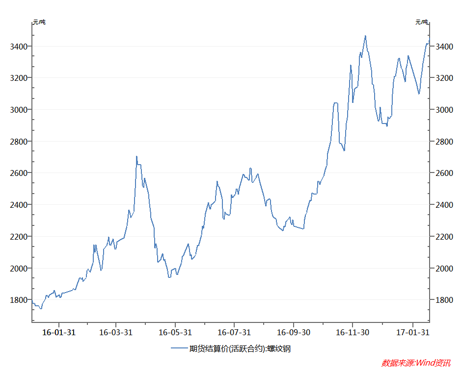 一峰更比一峰高。过去一年,螺纹钢涨势迅猛,从去年年初截至2月17日,涨幅达到惊人的92%,而从去年12月截至到2月17日,2个多月的时间内涨幅也达到11.8%。
