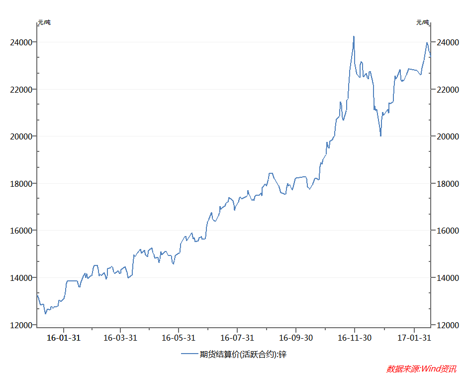 锌的涨幅也很骇人。过去一年的涨幅达到76.3%。