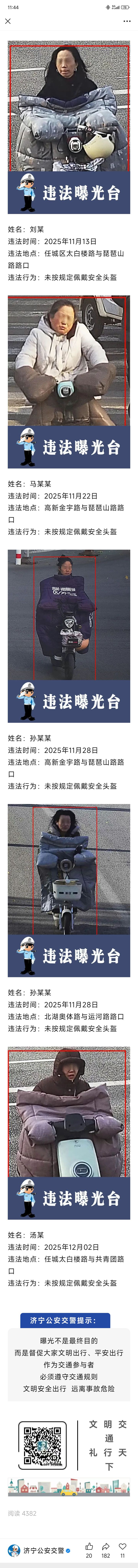 [济宁资讯] 曝光台 ▏曝光驾乘电动自行车不规范佩戴安全头盔的违法行为! |