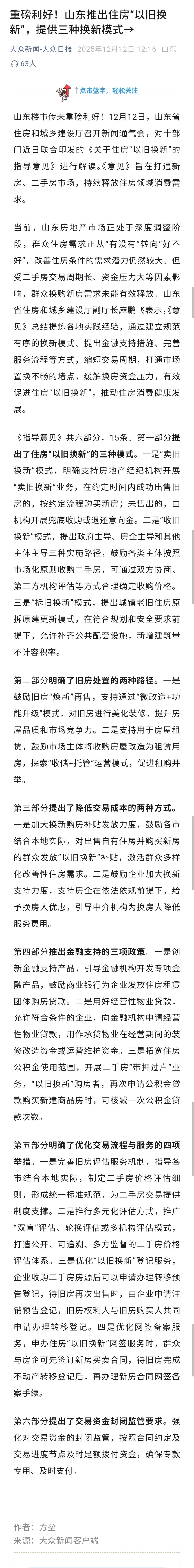[济宁资讯] 重磅利好!山东推出住房“以旧换新”,提供三种换新模式 |