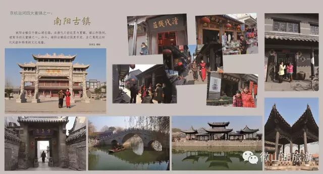 南阳镇,约始建于战国时期。明清时期,随着京杭运河的开通而兴旺。南阳作为运河商埠,逐步形成水乡市镇,成为古运河畔四名镇之一。作为古镇的南阳岛四面环水,在石拱桥横卧古运河上,连接着运河两岸的人家。南阳街上店铺林立,镇上人家濒河而居,依运河而错落有致的房舍,狭窄的街巷,如长长的扁担挑着整个市镇的繁荣与昌盛,夜市则充满了浓郁的江北水乡气息。  如今的南阳镇已成为有名的旅游景点,吸引了不少游客前来参观游玩,南阳镇政府投入大量资金对南阳镇进行了保护性规划,修缮古建筑,完善配套设施,整治村镇环境,打造成集历史文化和生态休闲为一体的乡村旅游地。