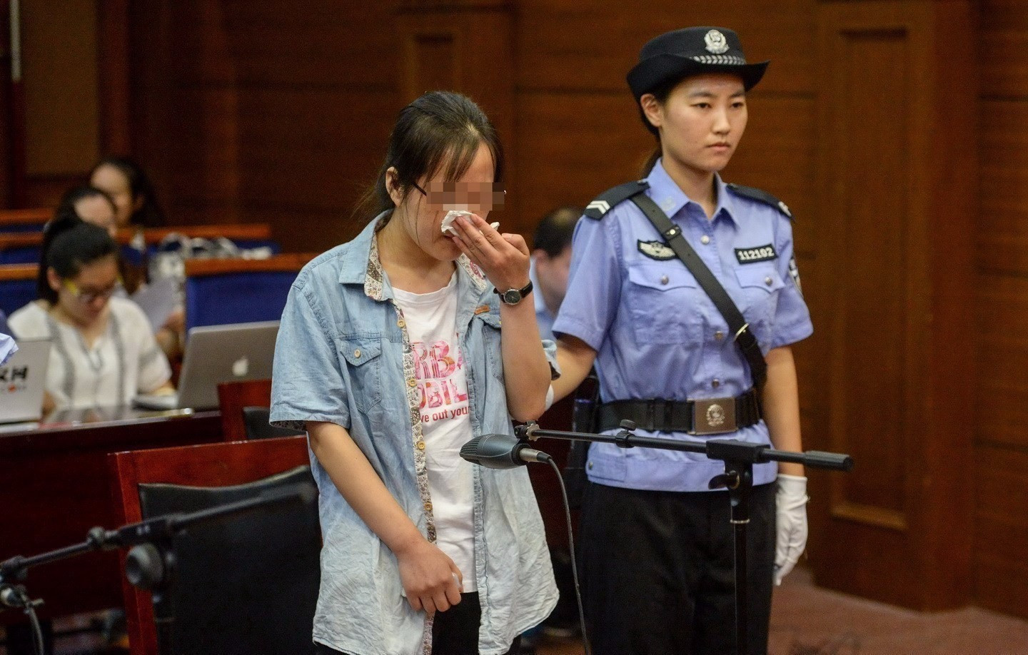 1990年出生的王某,大专文化,是某科学技术学会的文秘。2014年开始,王某报名参加了北京市高等教育自学考试。图为被告人李某悔过流泪。