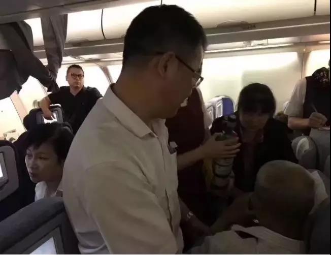 幸运的是,乘坐同一航班的有六七名医生,出于职业本能,他们在听到飞机的广播后立即起身来到潘先生身边,迅速进行救治。