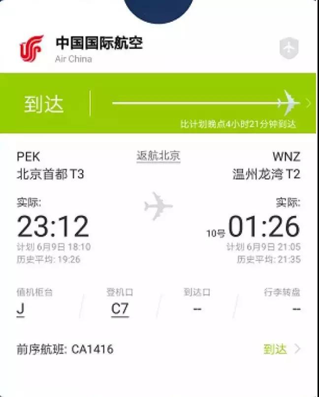 6月9日晚8时30分左右,已经延误的国航CA1539航班起飞,从北京飞往温州。