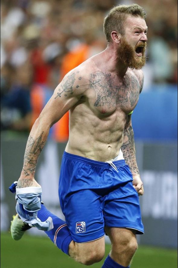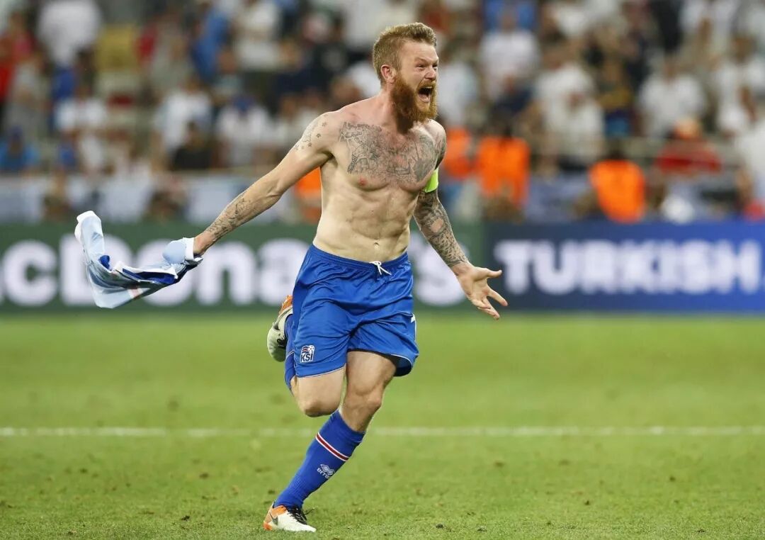 预选赛的末尾,我们在主场迎战哈萨克斯坦,那时我们只需要一分就可以闯入到欧洲杯的正赛中。如果成功的话,我们将是欧洲杯决赛圈历史上最小的参赛国。不过那场比赛非常艰难,我甚至被主裁判罚出场了,但是当我们最终0-0战平对手的时候,我们像子弹一样冲向了场地中央。我穿着外套就跑了出去,我们整齐划一地发出维京战吼,我想整个冰岛都应该听到了那个声音。随后那天晚上,我们还去了雷克雅未克的广场庆祝,到那的时候我们发现已经有成千上万的球迷在等着我们了。