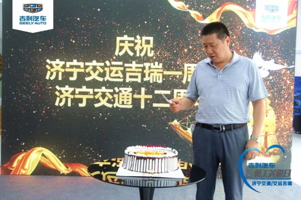 交运吉利总经理张总为济宁交运吉瑞一周年与济宁交通十二周年进行切蛋糕