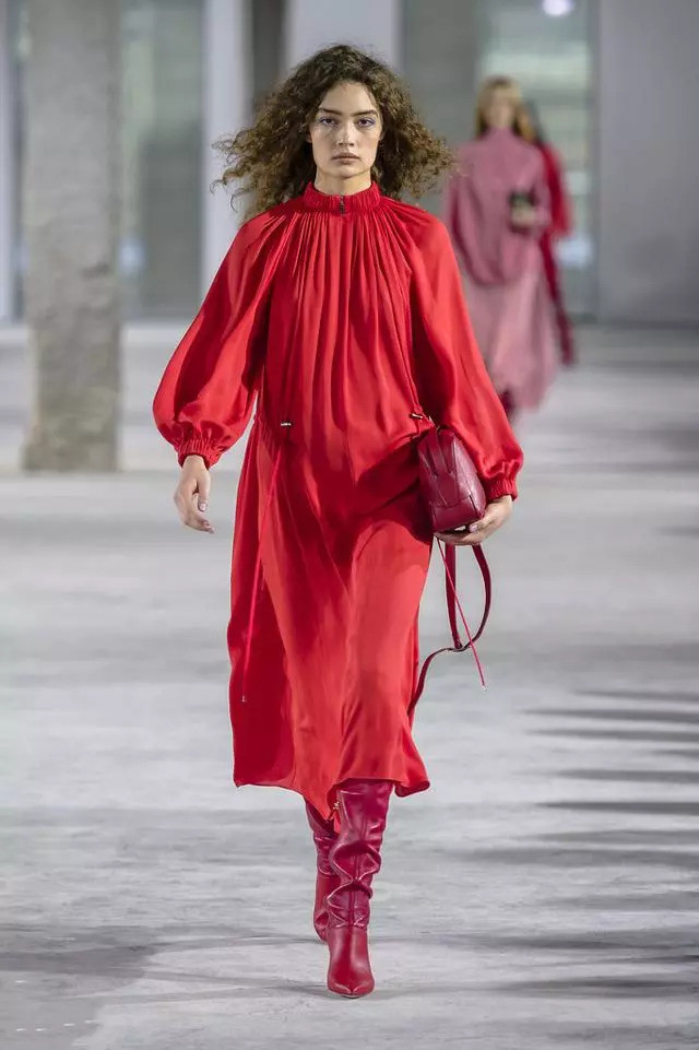 2018 Fall/Winter London Fashion Week Runway Roksanda 红梨充满慵懒的气息,无时无刻不在散发着女人的魅力。就像寒冬腊月里的一只温暖的小太阳,让人爱不释手,无法忽视。