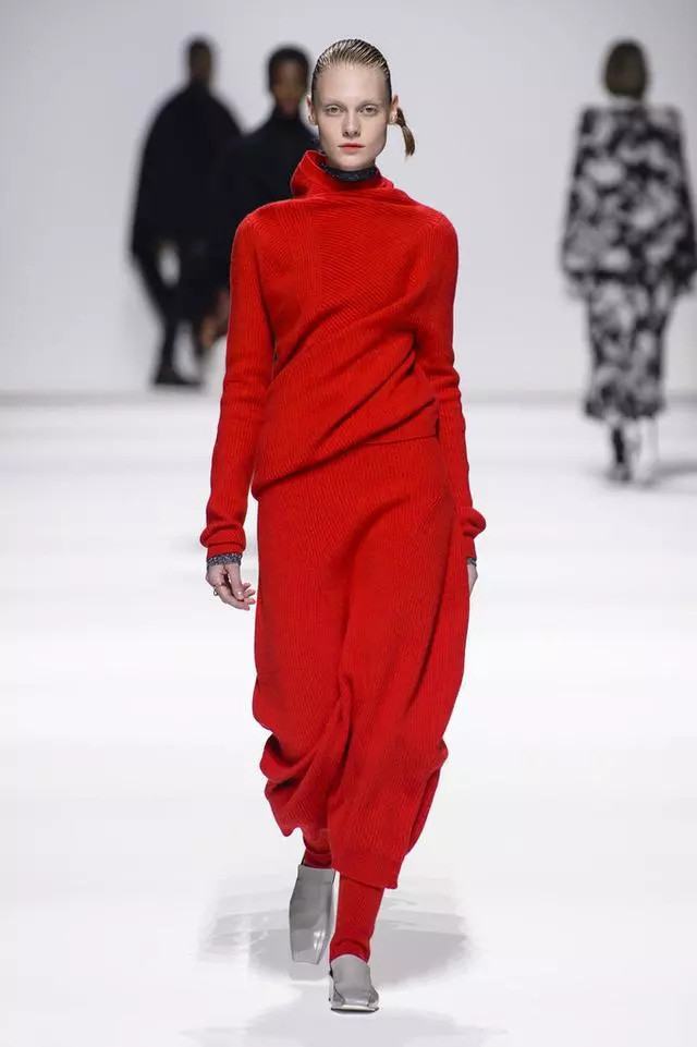2018 Fall/Winter Milan Fashion Week Runway Jil Sander 热情似火的罂粟红相比较可口的红梨色更为鲜亮而又充满力量,大面积的运用罂粟红极具表现力。 2 y3 T$ z( X1 I2 G0 A4 M4 Z