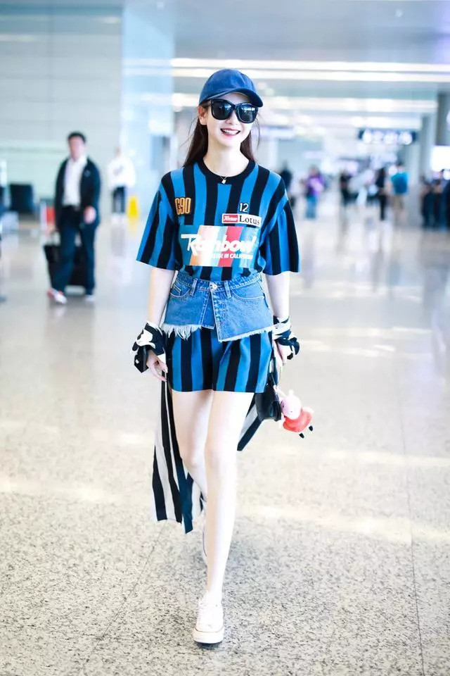 2 C) \# B1 P& B! J# ^9 h! T戚薇的蓝黑色条纹运动服使她看起来充满活力,无时无刻不在洋溢着青春的气息。 * y% k0 N8 e- P d, Y L