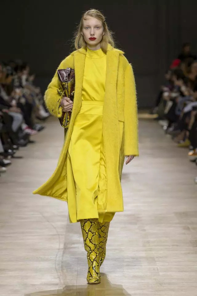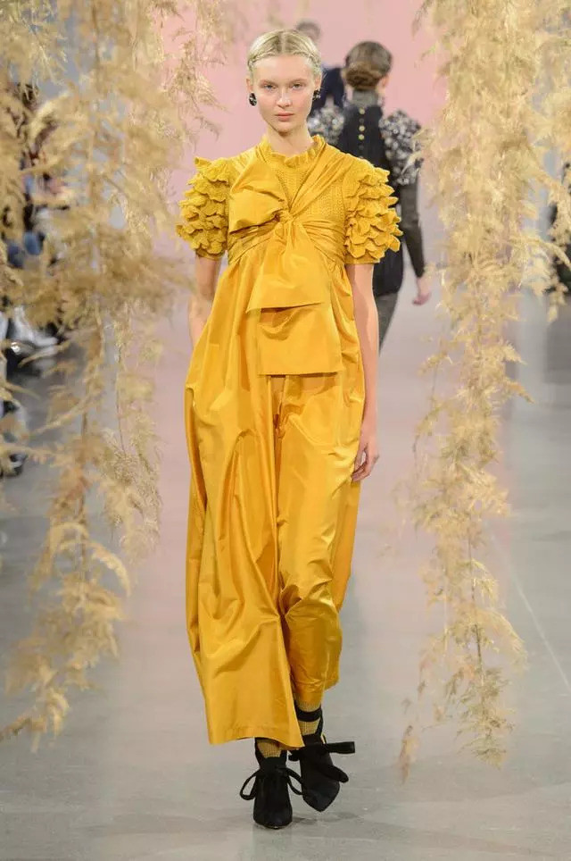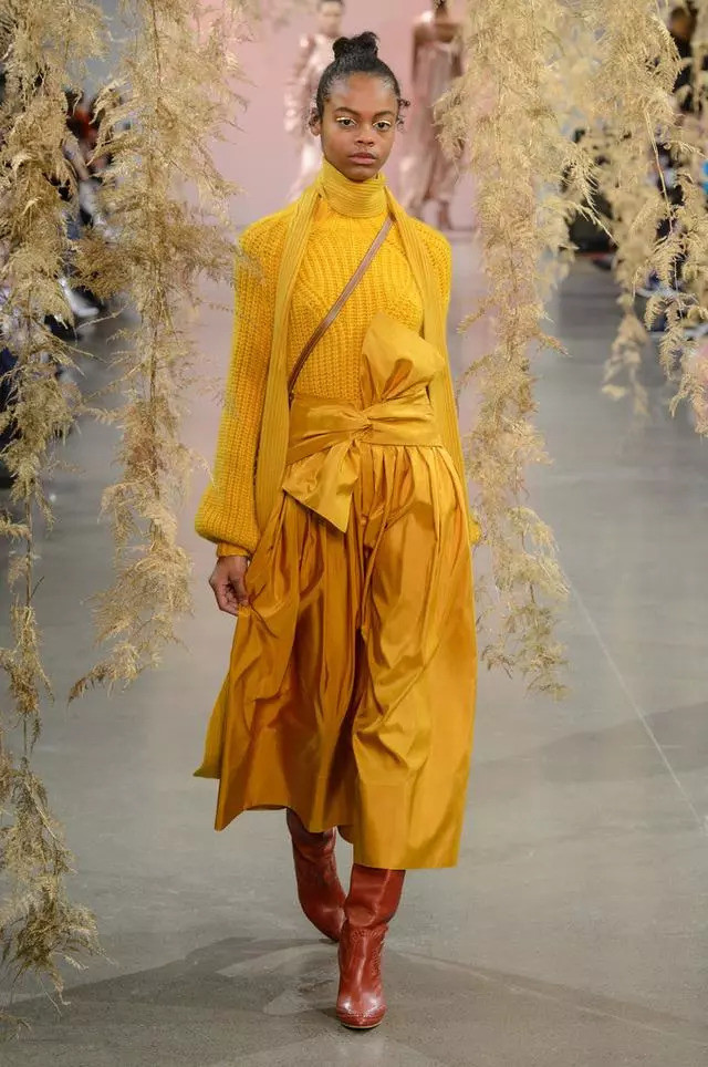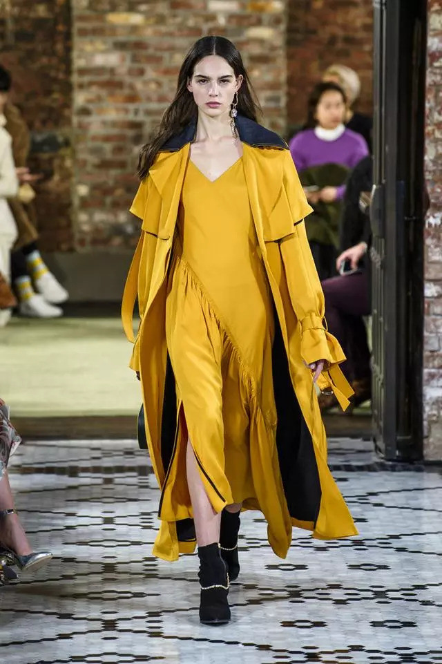 2018 Fall/Winter New York Fashion Week Runway Ulla Johnson 香辛的锡兰黄比普通的黄色多了一抹异国风情,就像秋冬时节在英格兰街头漫步,严寒的冷风与潮湿的空气让人如坠静谧之谷。