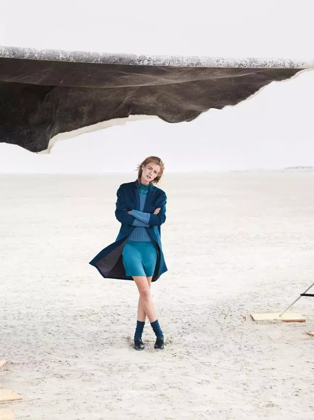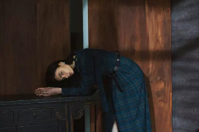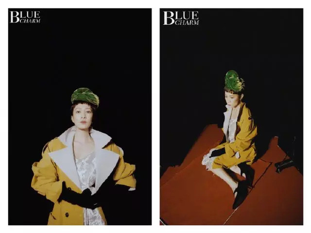 余诗曼金九双封面 暗黑的背景把视线一下子聚焦在人物身上,锡兰黄的大衣衬托了颜色的主调,明快又衬托肤色。 & z4 H3 ~2 ~) Y- e2 o