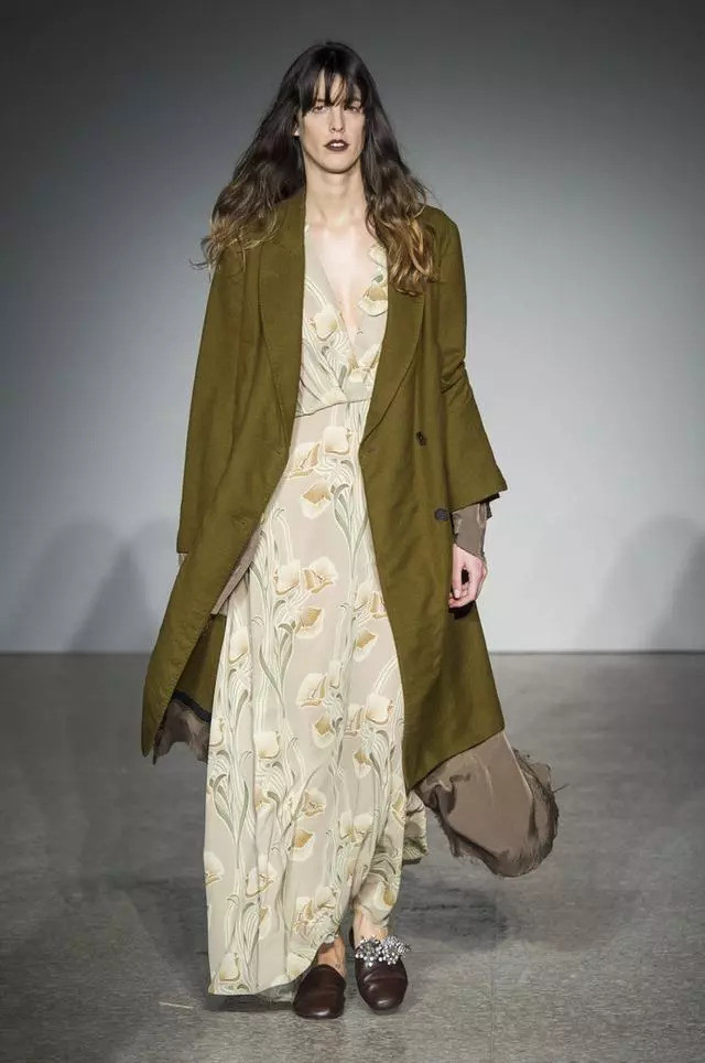* C2 Q, y1 c6 }3 G2018 Fall/Winter Milan Fashion Week Runway Erika Cavallini 马丁尼橄榄绿搭配一条明亮的连衣裙,随性有赋有森系。