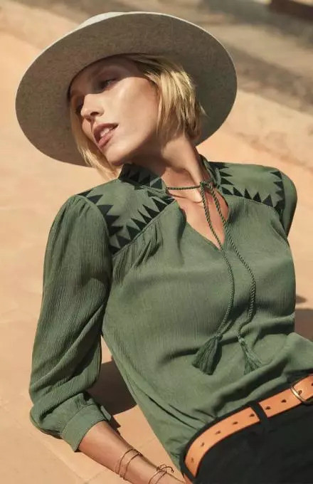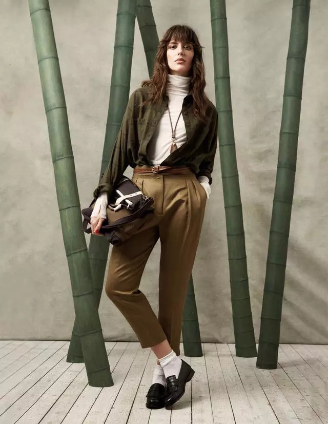 + b1 a3 Q. l6 \* B8 {' |马丁尼橄榄绿的上衣搭配着九分裤,多了一丝军旅的帅气。 枯叶橘 Russet Orange / o1 l5 ]: b/ P' E9 f2 i