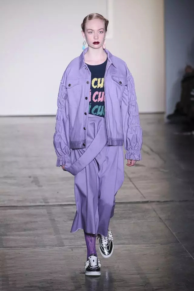 ! P' @5 E1 w2 @3 l8 ]2018 Fall/Winter London Fashion Week Runway David Koma 相比较大片的紫色,单品的紫色更适合黄皮肤的人选择用来搭配。
