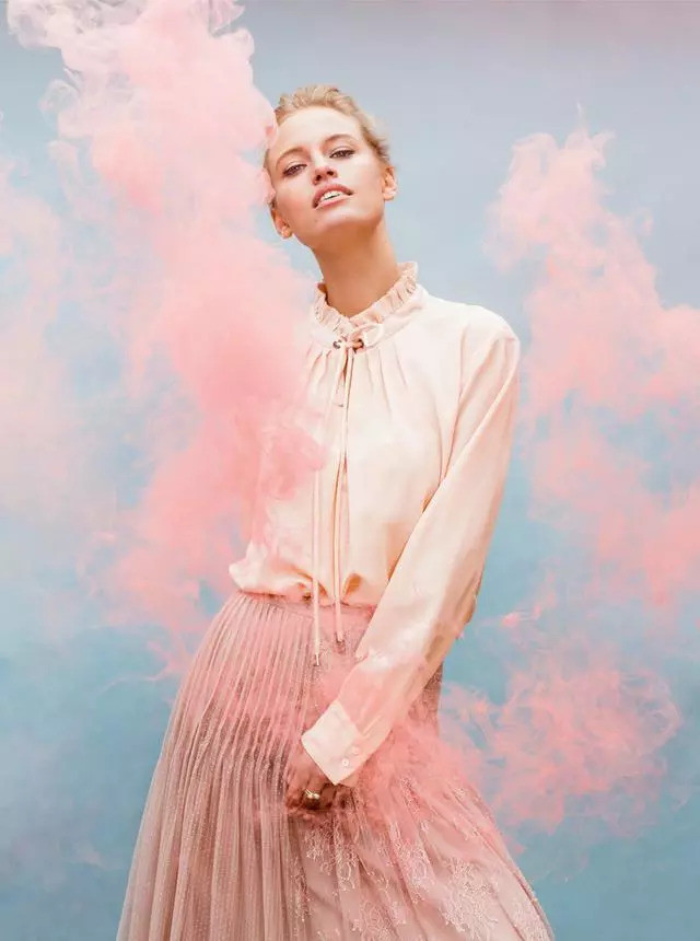 甘玫瑰色不单单可以驾驭仙女裙,充满运动风味和复古韵味的衣服也不在话下。 4 v8 _; L& L" U) D
