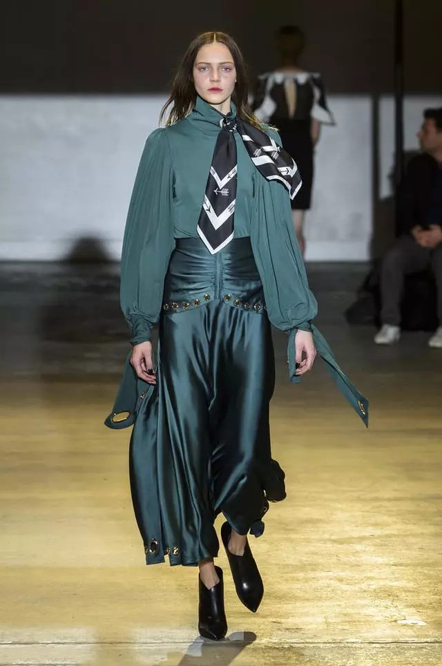 # w9 w- T/ w a/ |5 C3 M& @2018 Fall/Winter Paris Fashion Week Runway Vanessa Seward 高贵的咬涓绿不管搭配什么样的衣服材质都百看不厌。