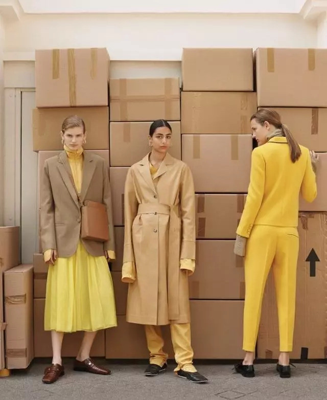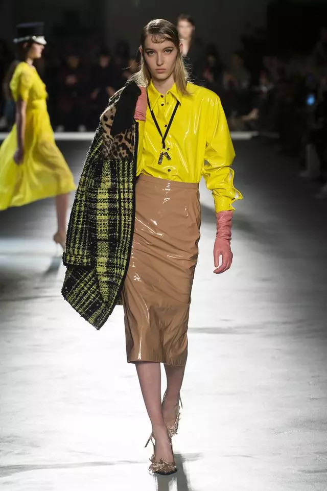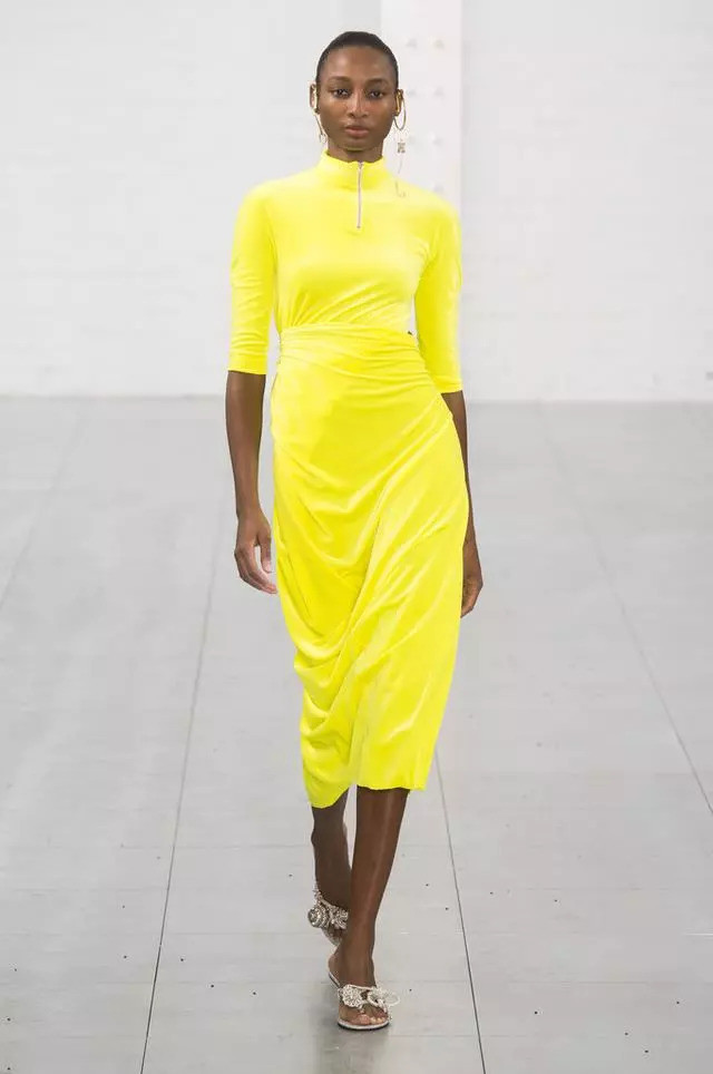 2018 Fall/Winter London Fashion Week Runway Fashion East 石英黄是介于柠檬黄和绿之间的颜色,非常的明亮夺目,让你分分钟成为万众瞩目的焦点。 ) F; L! w% G, K8 \6 `