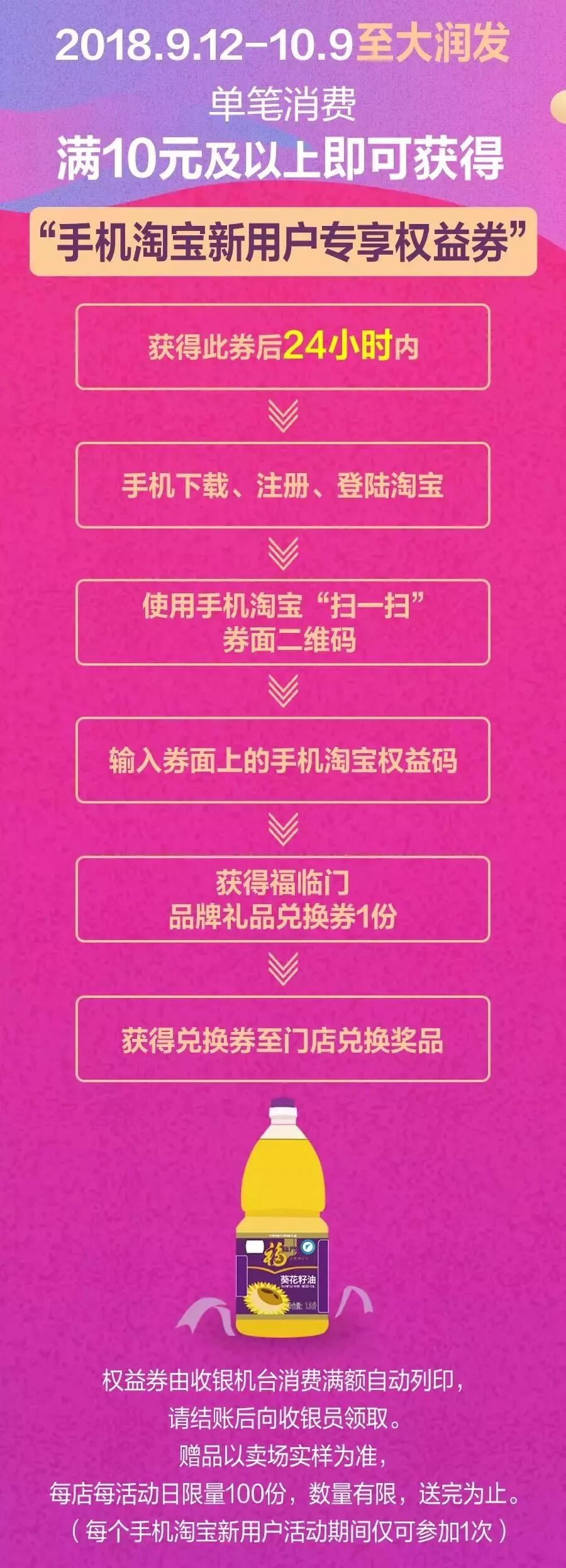 【大润发济宁店】手机淘宝新用户专享丨免费送福临门礼品!
