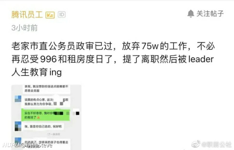 [网友活动] 放弃腾讯75w的年薪,回老家做公务员。提了离职被leader教育一番 |