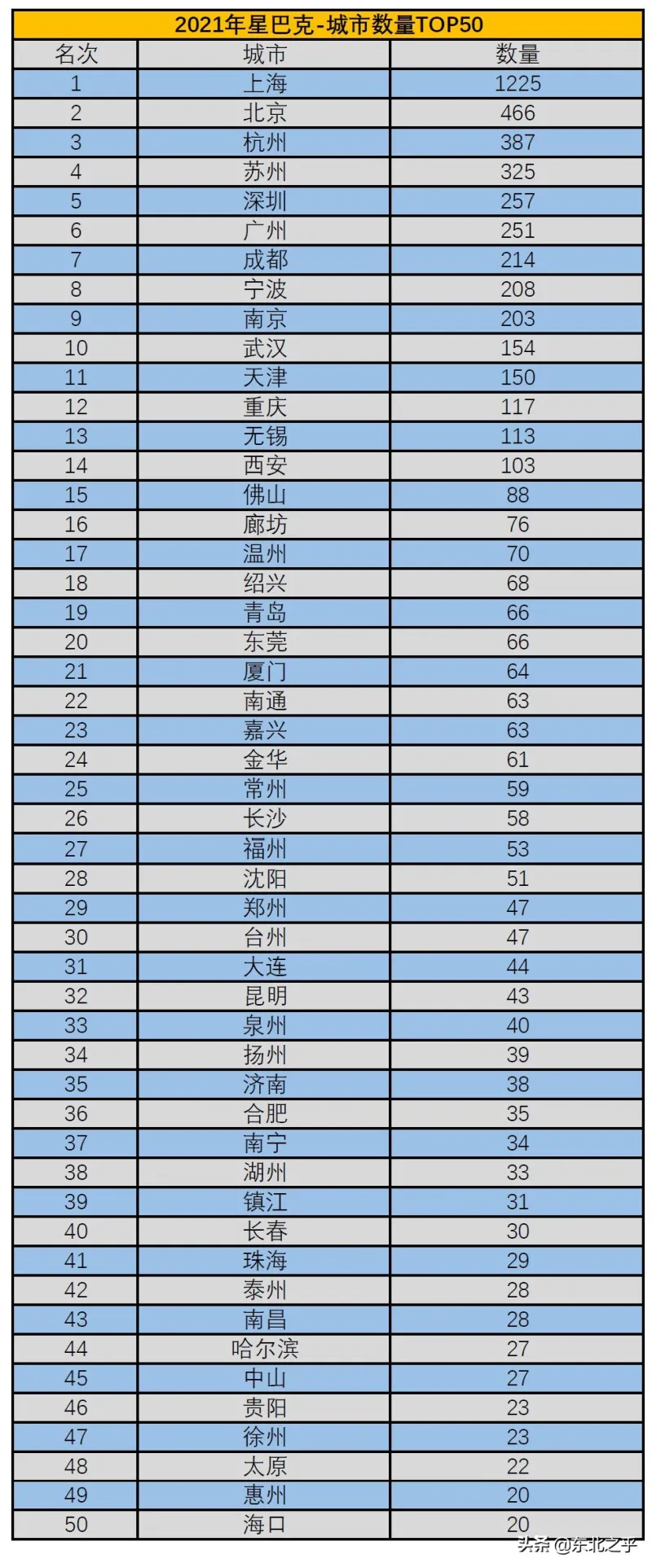 [百姓心声] 2021年中国城市“星巴克”数量排行榜TOP50,人家徐州有23家星巴克,咱济宁才几家? |