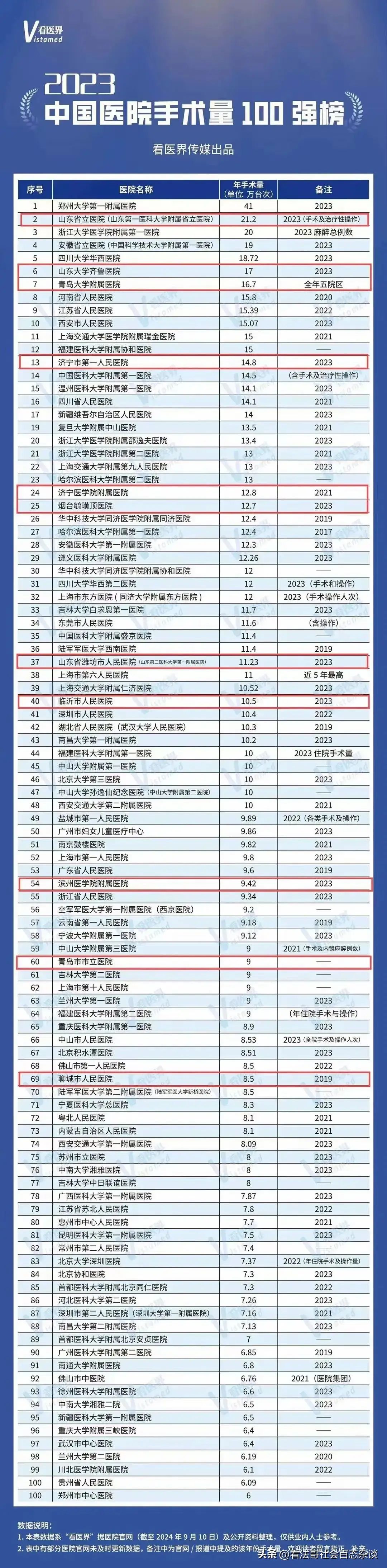 [济宁资讯] 山东11所医院入选全国手术量100强榜单 |