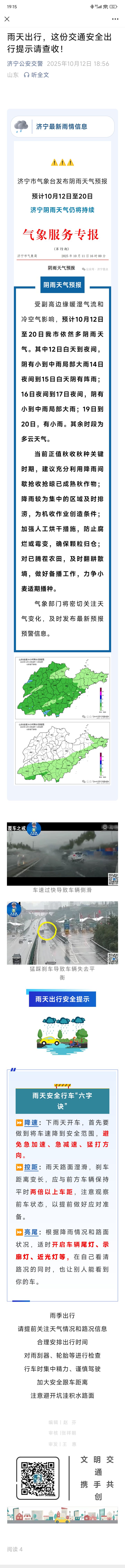 [济宁资讯] 雨天出行,这份交通安全出行提示请查收!